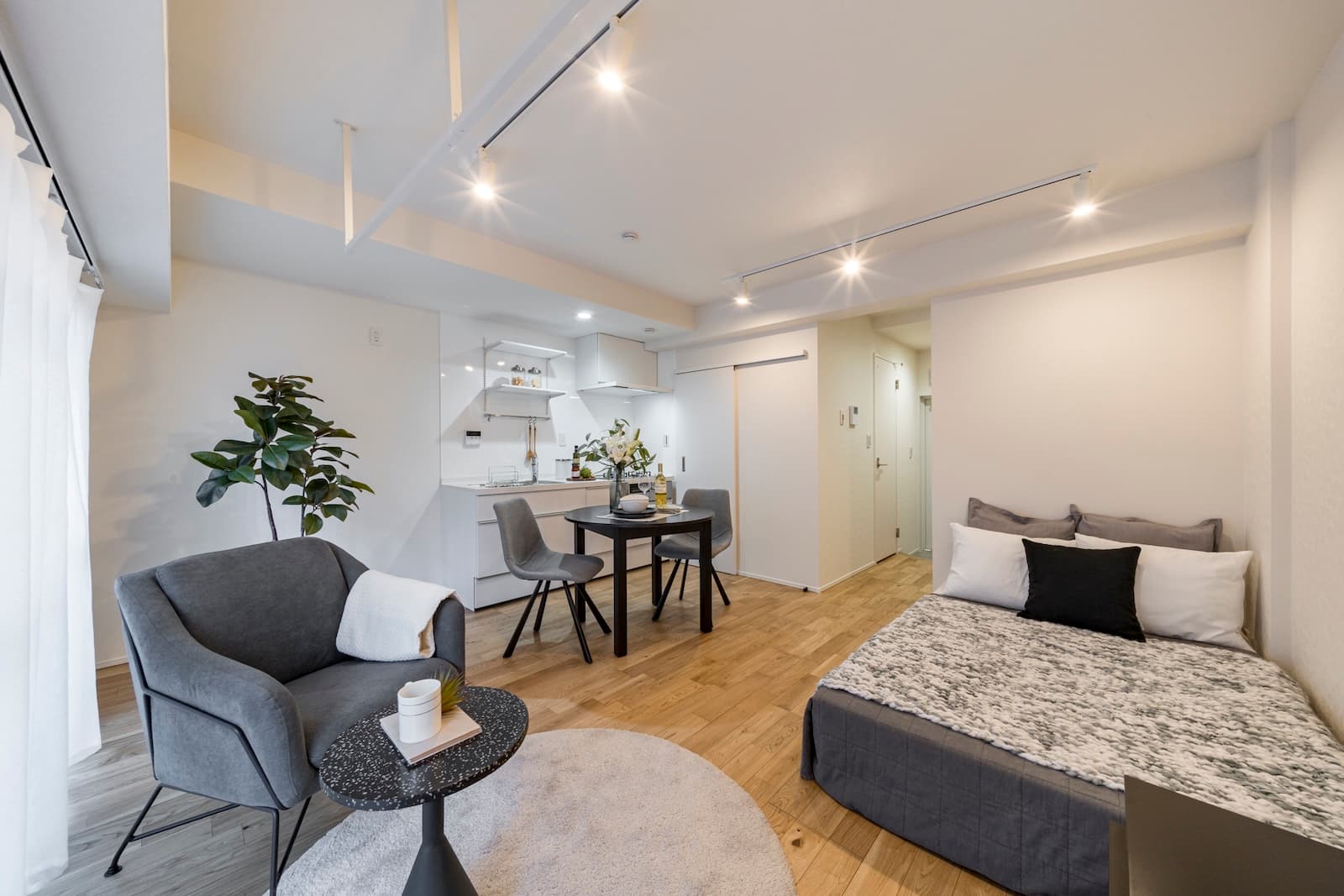 「ペット可のマンションを、猫との暮らしを充実させる空間に再生しました。リビングの壁面にマグネット式のキャットウォークを設置して、自由に取り外せる仕様にしたんです」