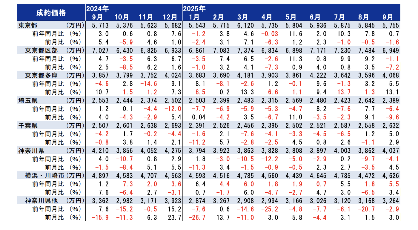 出典:「月例速報Martket Watchサマリーレポート2025年9月度」(公益財団法人東日本不動産流通機構)