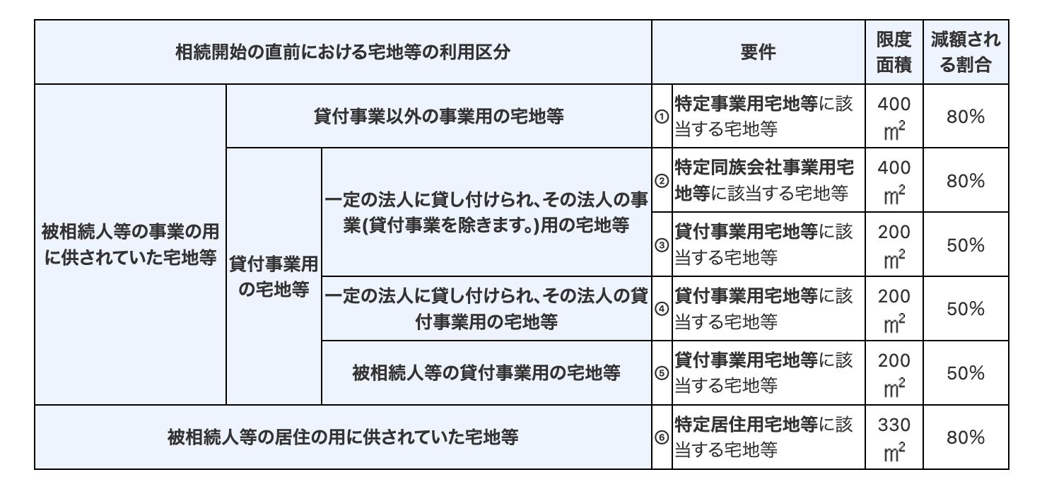 出典:「相続した事業の用や居住の用の宅地等の価額の特例(小規模宅地等の特例)」(国税庁)
