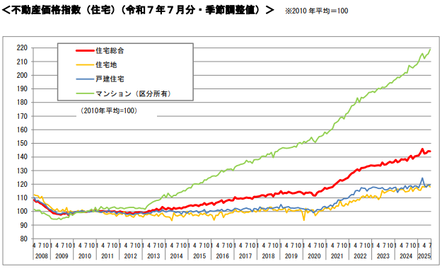 出典:「不動産価格指数(令和7年7月・令和7年第2四半期分)」(国土交通省)