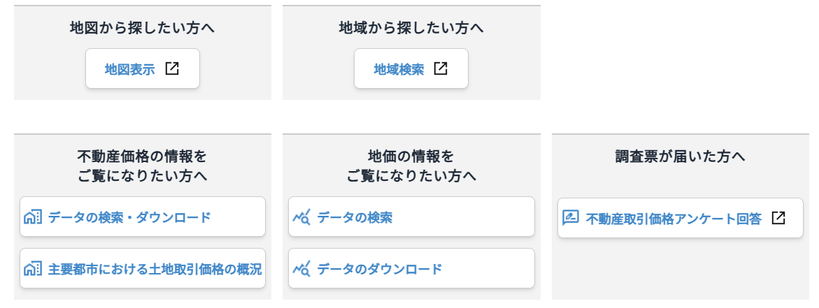 地価公示価格は、国土交通省が提供している「不動産情報ライブラリ」で確認できます。売却相場の調べ方は、以下のとおりです。