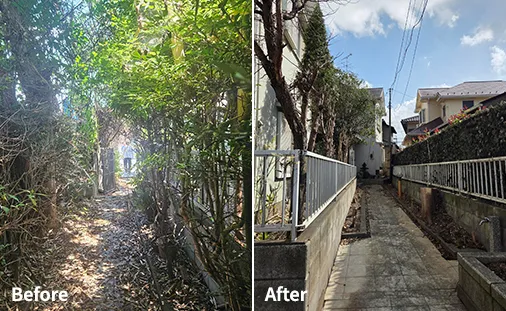 伐採が終わったあとは、それまで木々で遮られて見えなかった空が見えるようになり、物件全体の印象が大きく変わりました。家も住宅街らしい風景を取り戻し、近隣の方々からも「きれいになったね」と感謝されるほど。その様子を見て若林さんも「これなら大丈夫です」と太鼓判を押してくれました。